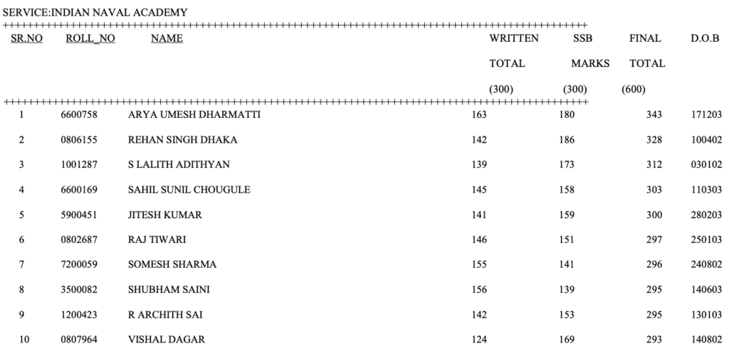 On the other hand, 103 candidates were recommended for Indian Naval Academy, Ezhimala. The cut-off of IMA for CDS (1) 2025 was 104 marks. The list below shows the top 10 candidates as per the merit.