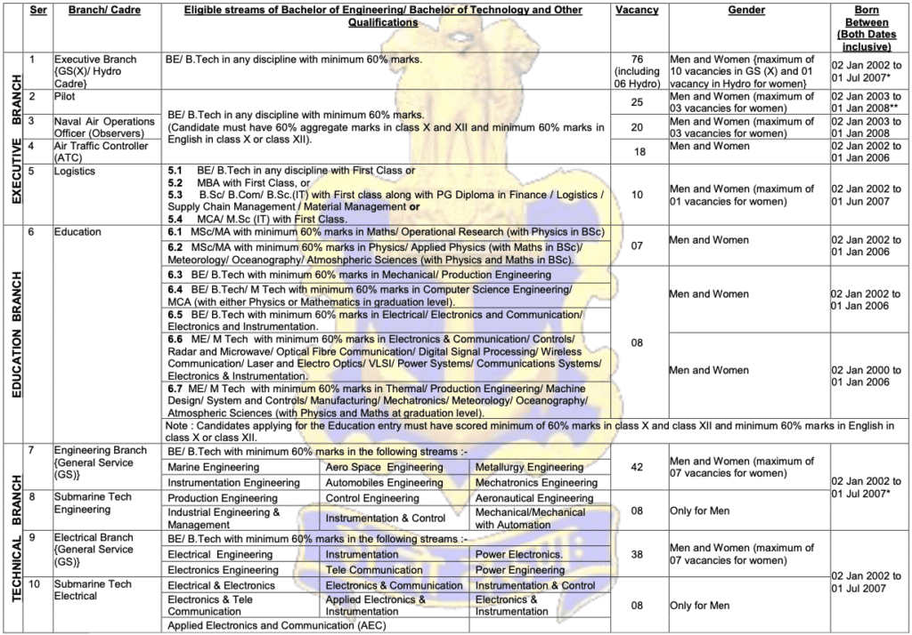 (d) Candidates selected in the final merit list will be required to submit the proof of completing the qualifying degree with minimum 60% marks by sending an email at the address officer@navy.gov.in. Candidates failing to meet the criteria will not be permitted to join the Academy.